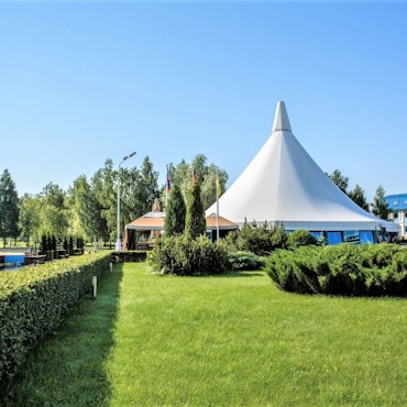 Шатёр в поселке Отрадное, находится в 7-ми километрах от МКАД. Гостям предлагаются локации в парковой зоне или у водоёма.