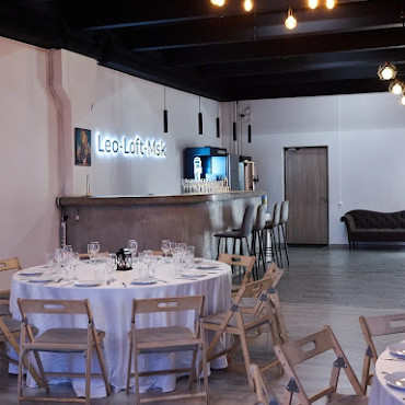 Большая фотостудия с верандой в стиле лофт, готовая к проведению съемок и организации ярких праздничных мероприятий.