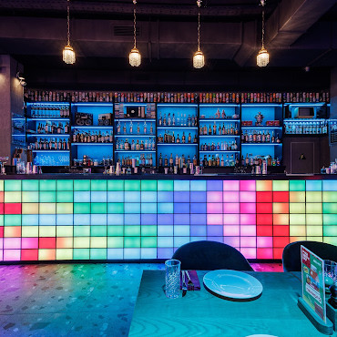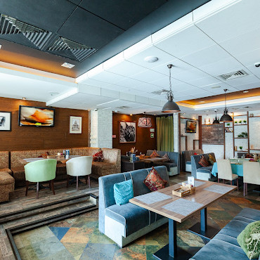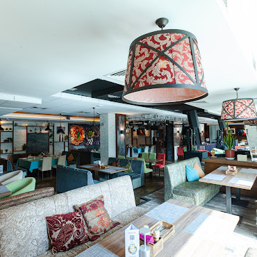 Арт-кафе с космополитичным меню. Интерьер играет на контрастах – спокойные тона оттенены яркими акцентами и причудливыми деталями.