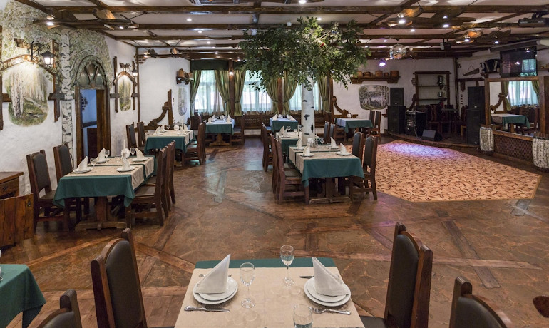 Ресторан расположен в парке «Березовая роща», подойдет для проведения фотосессий и прогулок с гостями.