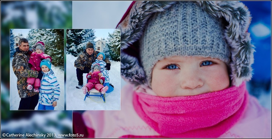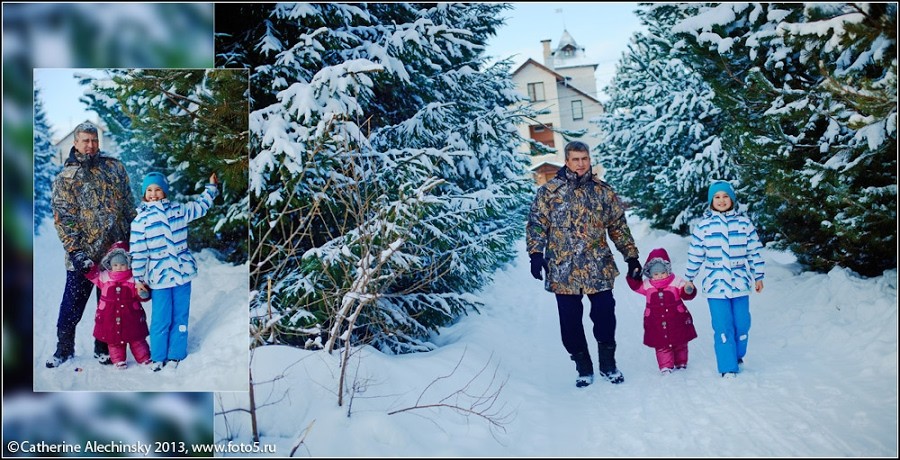 Зимняя классическая, традиционная постановочная семейная фотосессия
