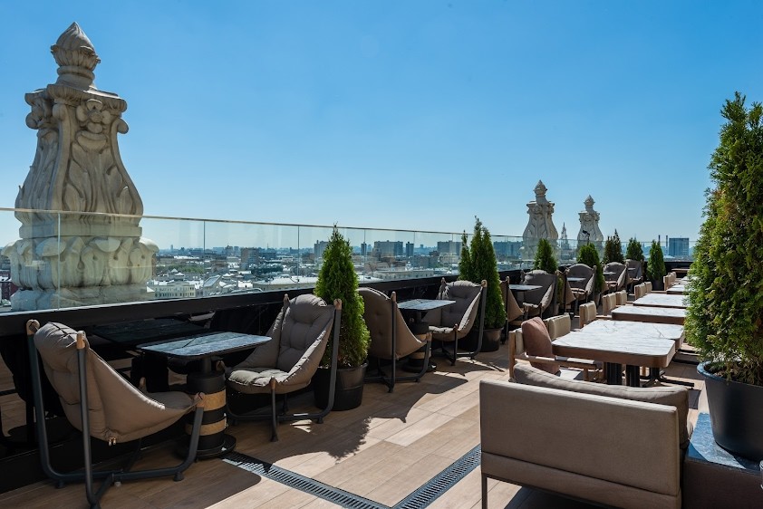 Ресторан Oblako53 находится на крыше четырехзвездочный гостиницы «Пекин» в Москве. Это место с двумя уровнями и террасами на крыше с панорамным видом на Столицу.