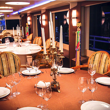 - Салон нижней палубы полностью застеклен, что позволяет комфортно совершать прогулки в любую погоду